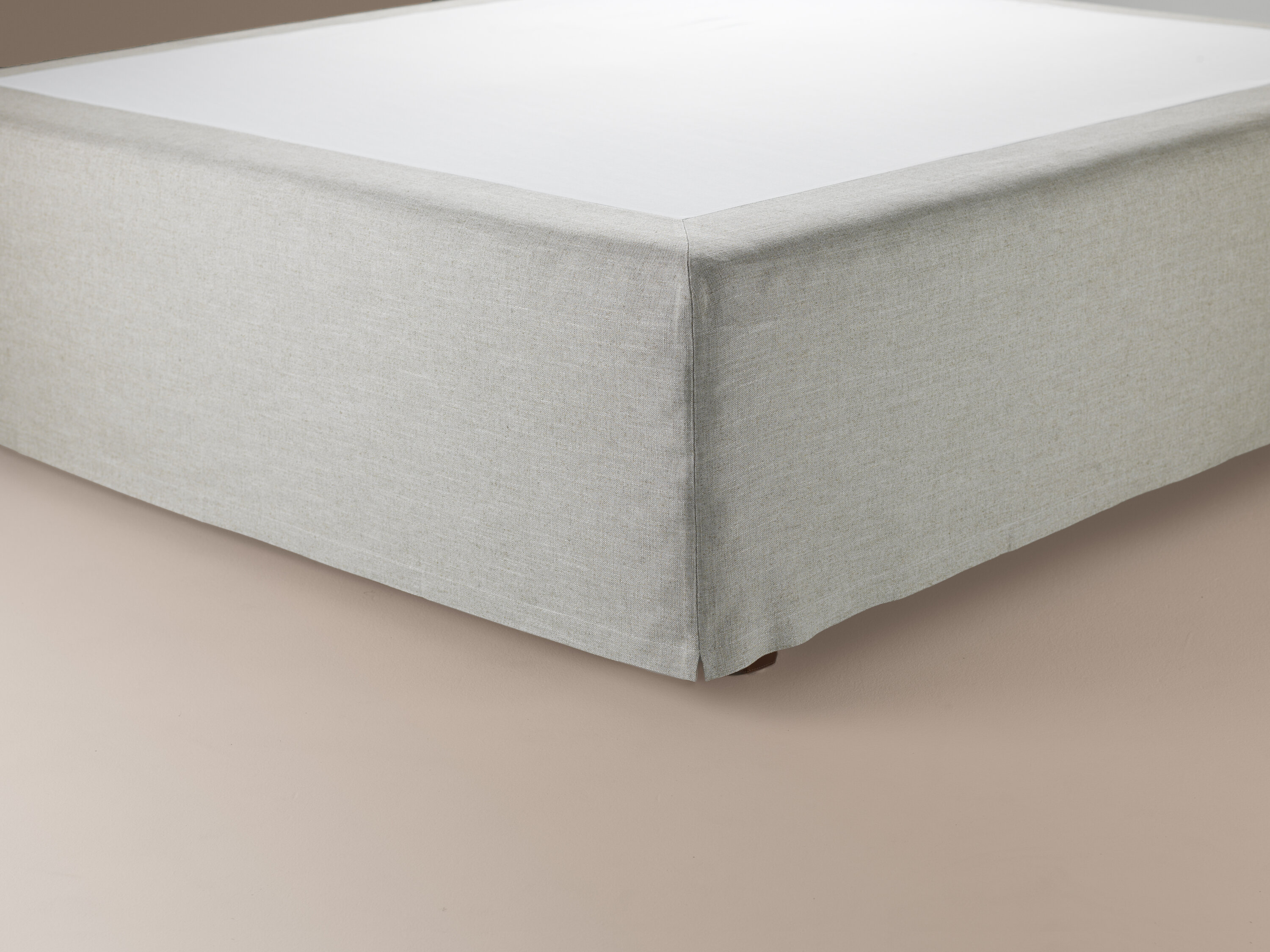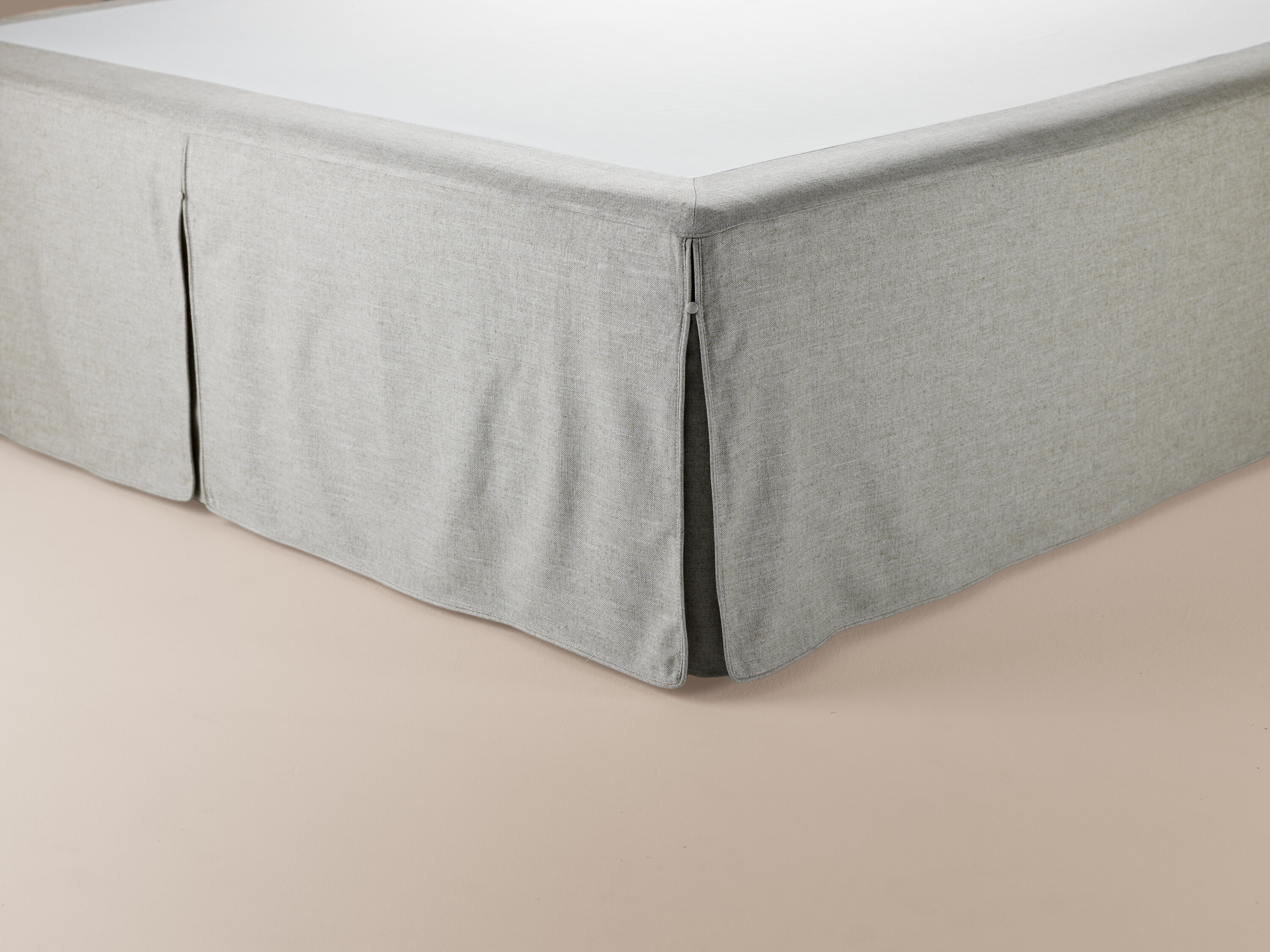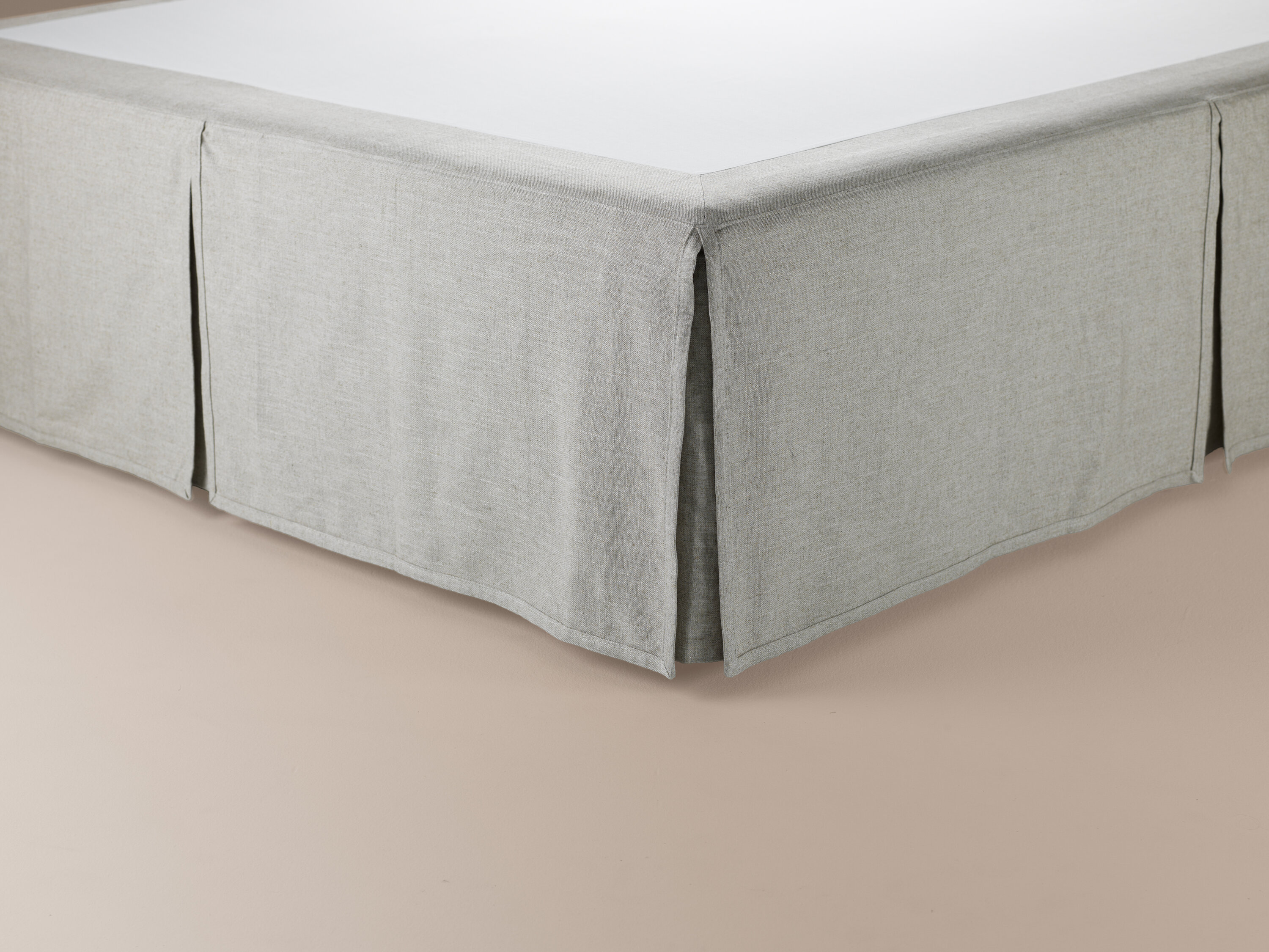 A handmade bed skirt with slits and soft corners for custom fit and perfect look.